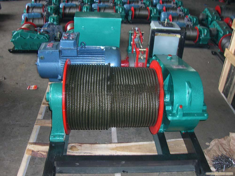 主要產品有:JM電控慢速大噸位卷揚機、JM電控慢速卷揚機、JK電控高速卷揚機、 JKL手控快速溜放卷揚機、2JKL手控雙快溜放卷揚機、電控手控兩用卷揚機、JT調速卷揚機、KDJ微型卷揚機等,僅能在地上使用,可以通過修改用于船上。它以電動機為動力,經彈性聯軸節,**封閉式齒輪減速箱,牙嵌式聯軸節驅動卷筒,采用電磁制動。該產品通用性高、結構緊湊、體積小、重量輕、起重大、使用轉移方便,被廣泛應用于建筑、水利工程、林業、礦山、碼頭等的物料升降或平拖,還可作現代化電控自動作業線的配套設備。JM系列為齒輪減速機傳動卷揚機。適用于建筑安裝公司、礦區、工廠的土木建筑及安裝工程。