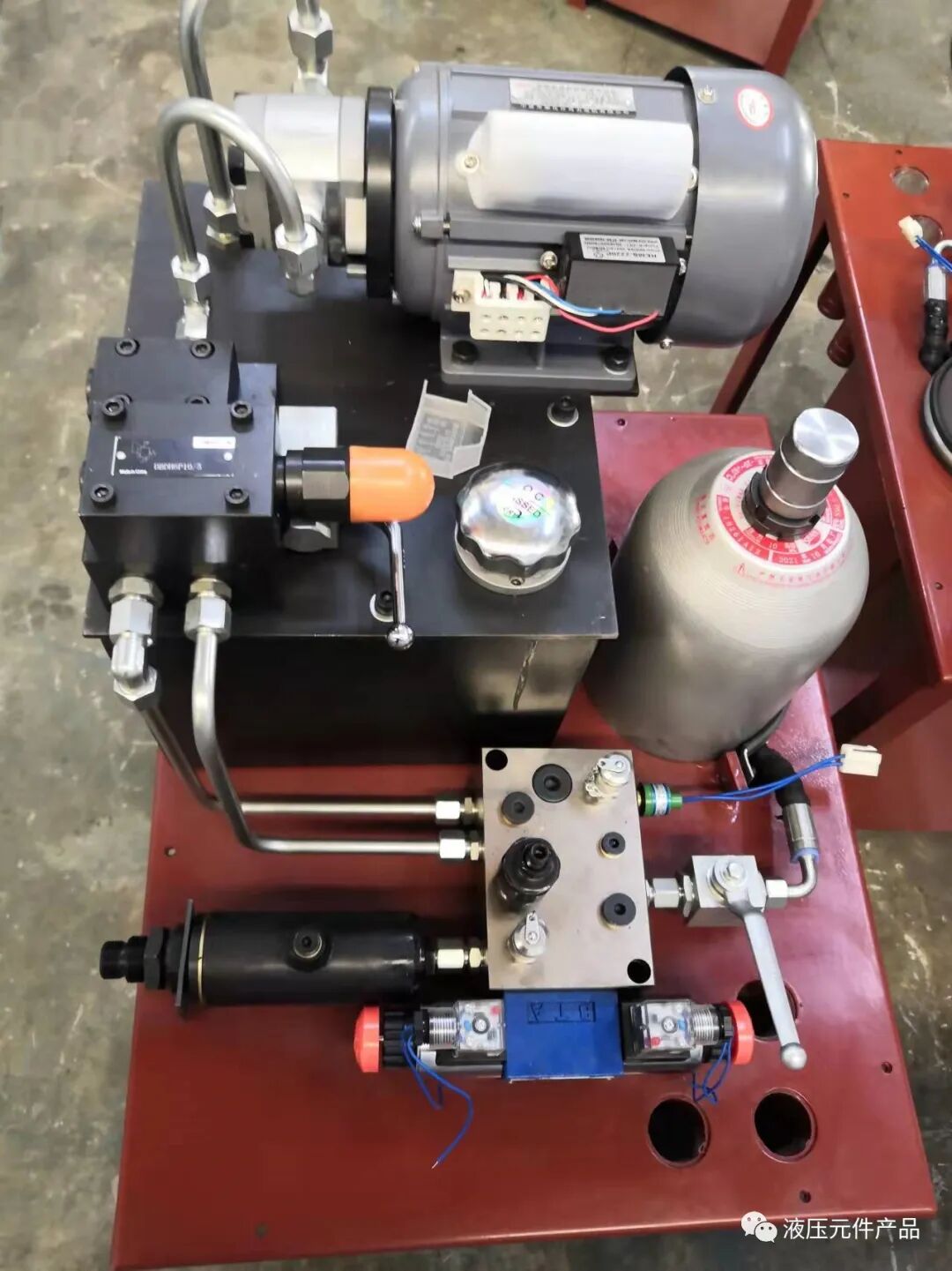 工作原理:電機帶動油泵工作提供壓力源,通過集成塊、液壓閥等對驅動裝置(油缸或油成達)進行方向、壓力、流量的調節和控制,實現各種規定動作。